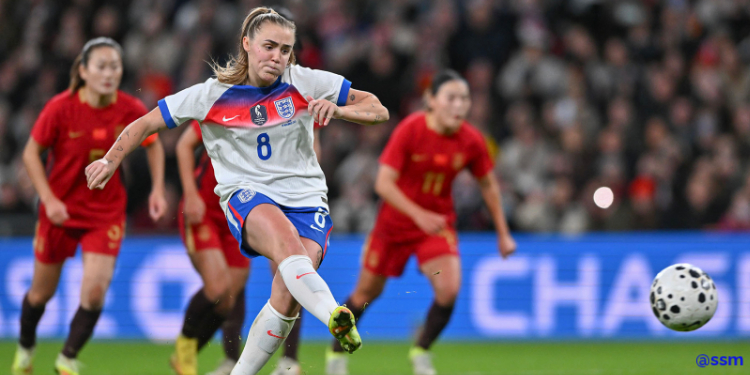 इङ्ल्यान्ड–चीन महिला फुटबल मैत्रीपूर्ण खेलमा स्ट्यानवेको गोल